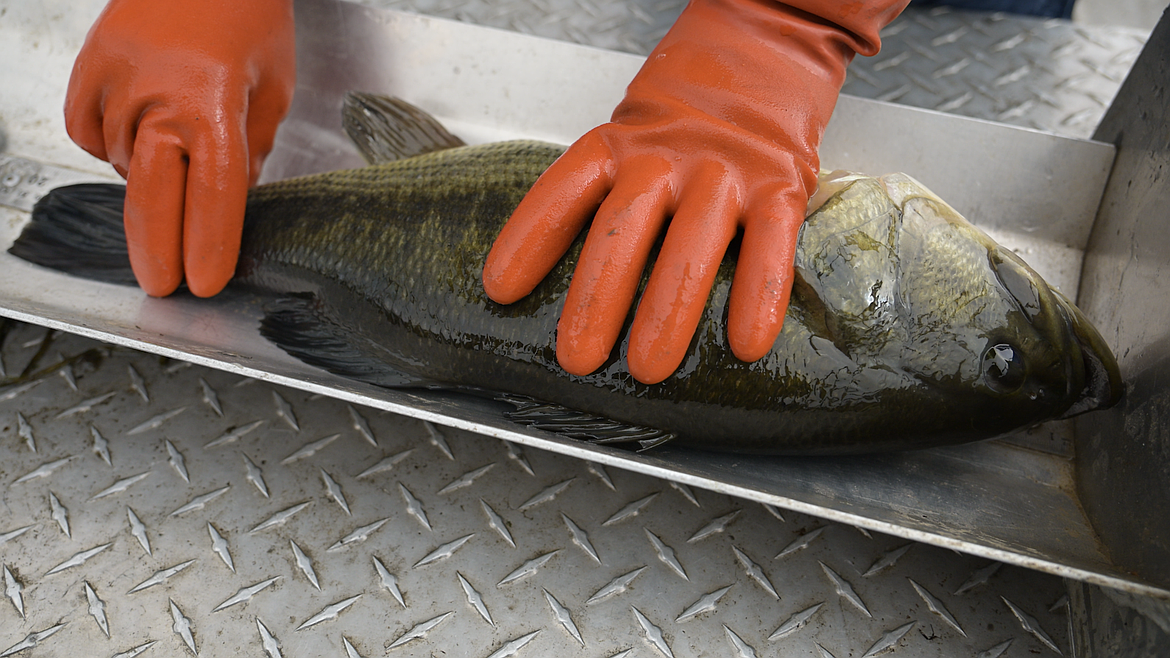 The study involves capturing largemouth bass, recording their length and weight, surgically implanting tracking transmitters, releasing the fish in the lake where they were caught and monitoring their movements over the next year.
