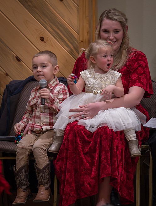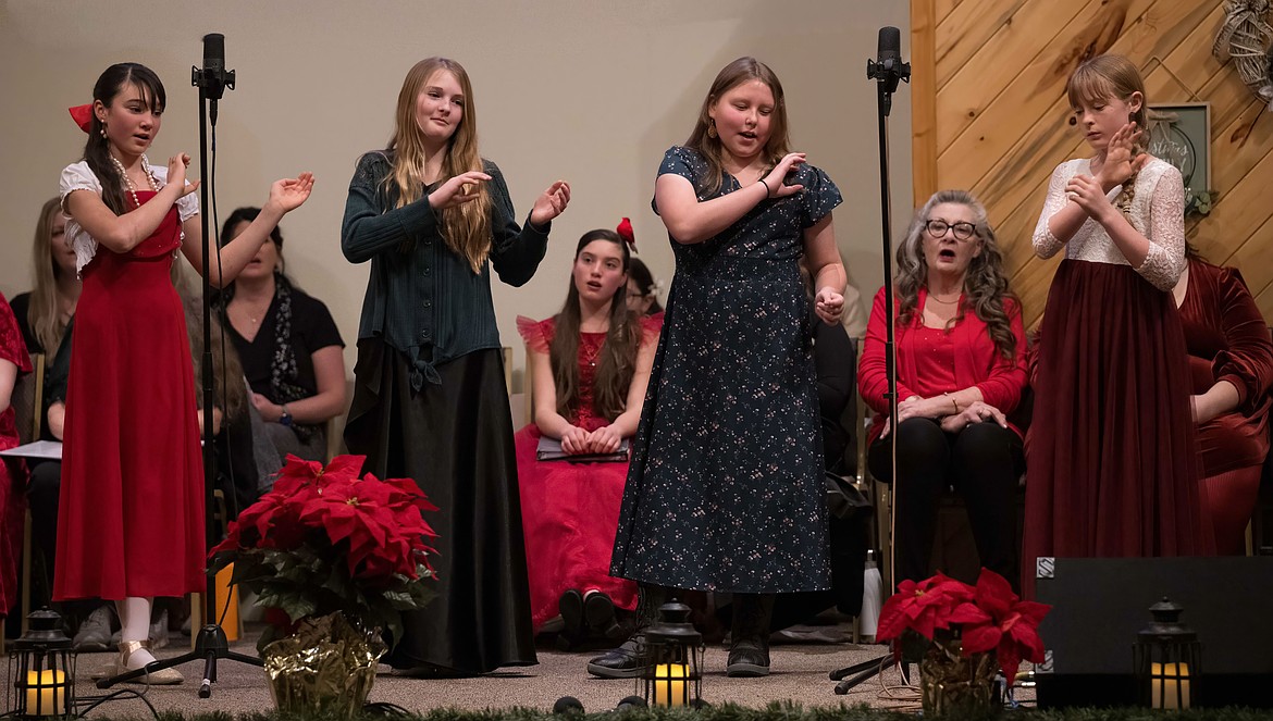 Under Croft’s direction, the choir delivered each hymn with strength and precise timing. Several selections were also performed by 14 members of the Clark Fork Christian Homeschool Co-op. A moving rendition of “Silent Night” featured four youth named Pepper McLimans, Joanna Hitchcock, Ailie Avilla, and Dilyn Doble who signed the lyrics while Jen Avilla accompanied on piano. Sisters Anaelle and Ailie Avilla followed with a piano duet of “What Child Is This.”