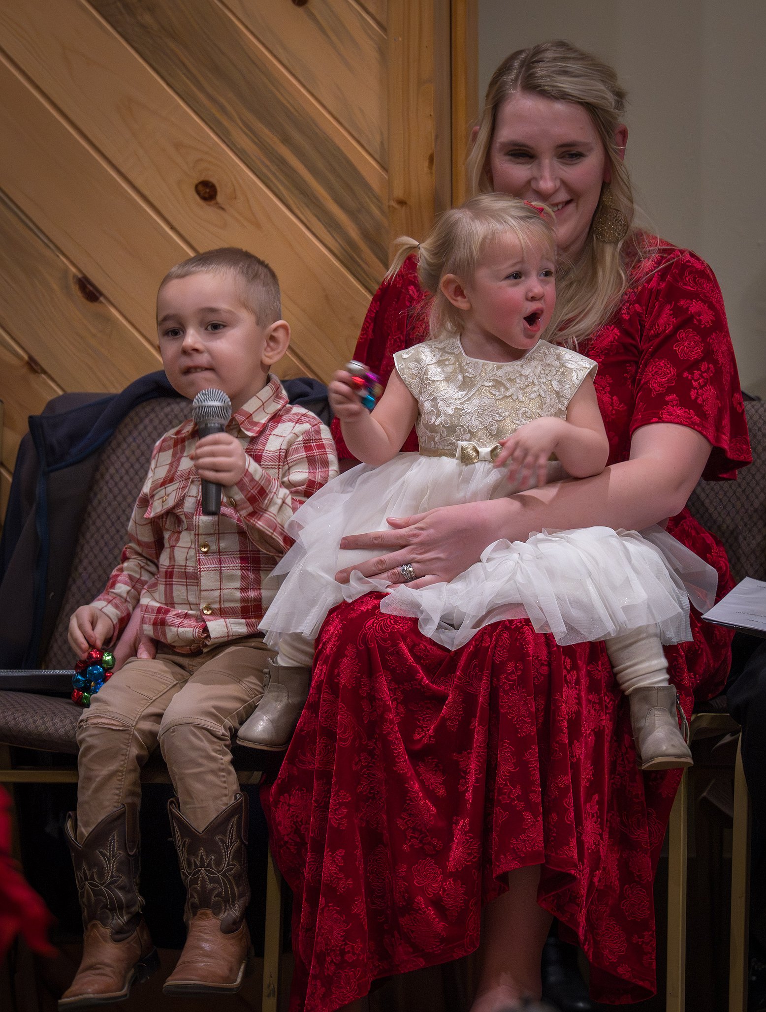 On stage for the fifth year was choir member Kate French, joined by her two children—3½-year-old Titus and 18-month-old Leona. Titus sat on his mother’s lap with a microphone in hand while Leona stayed close by, charming the audience.