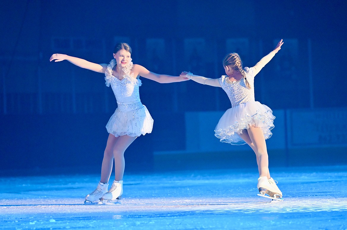 Isla Baldwin and Lyla Fleming perform in Glacier Skate Academy's Winter Wonderland On Ice show at Stumptown Ice Den in Whitefish on Saturday, Dec. 20, 2025. (Matt Baldwin/Whitefish Pilot)