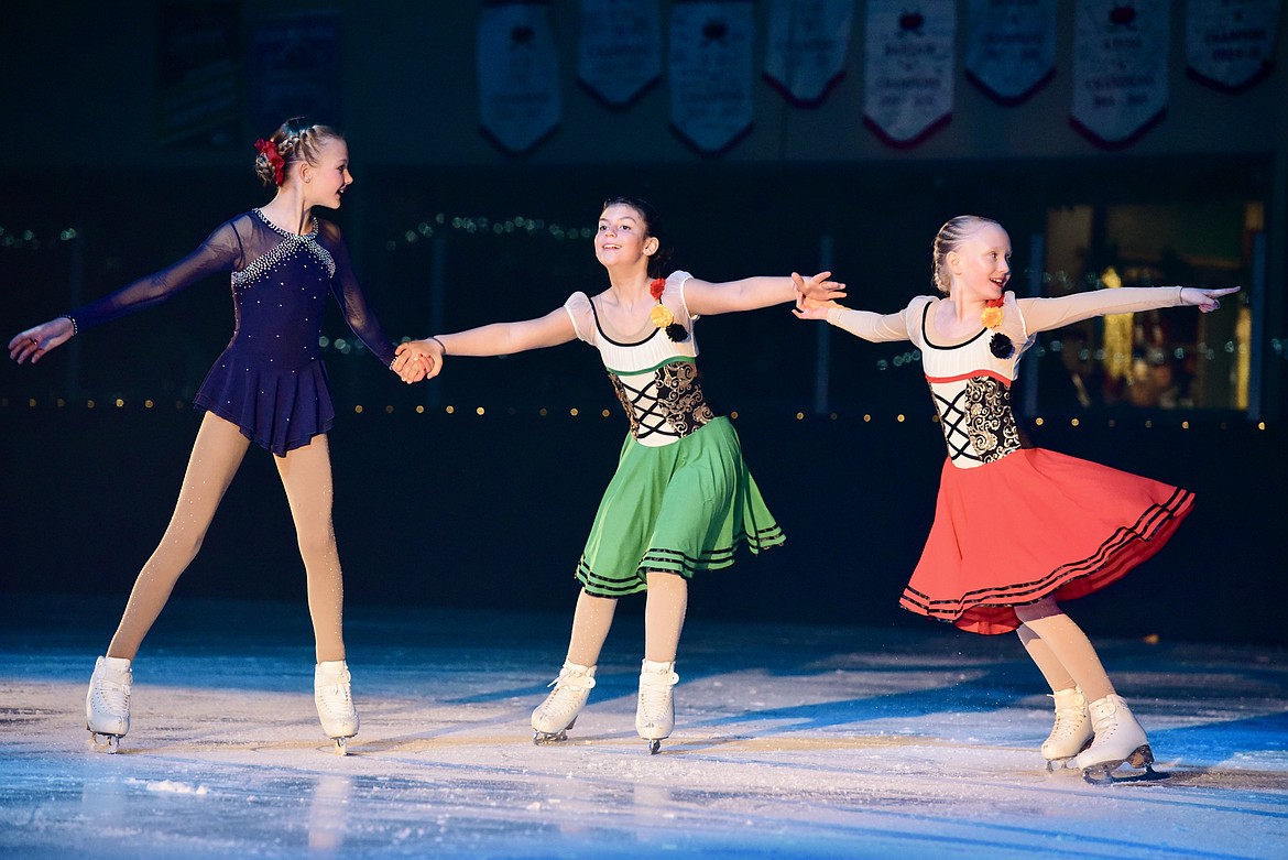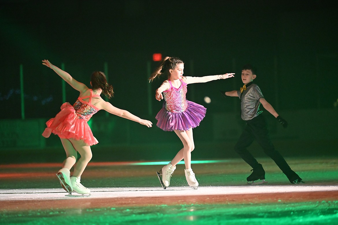 Claire Holt, Thea Hofverberg and Elyana Lyndsey performs in Glacier Skate Academy's Winter Wonderland On Ice show at Stumptown Ice Den in Whitefish on Saturday, Dec. 20, 2025. (Matt Baldwin/Whitefish Pilot)
