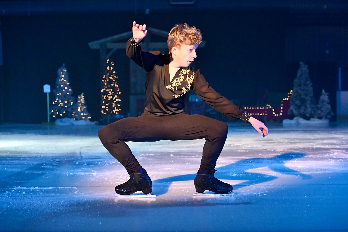 Cameron Nelson performs in Glacier Skate Academy's Winter Wonderland On Ice show at Stumptown Ice Den in Whitefish on Saturday, Dec. 20, 2025. (Matt Baldwin/Whitefish Pilot)