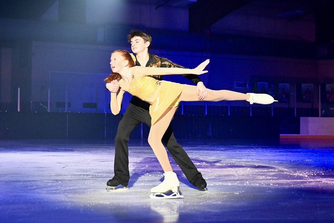 Myles Schott and Madeline Blair perform in Glacier Skate Academy's Winter Wonderland On Ice show at Stumptown Ice Den in Whitefish on Saturday, Dec. 20, 2025. (Matt Baldwin/Whitefish Pilot)