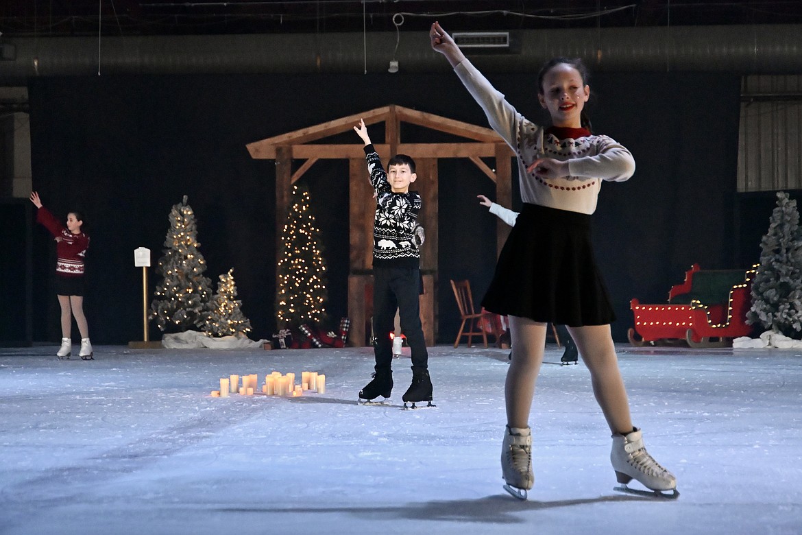 Lorine Monasakanian and Fischer Cassidy perform in Glacier Skate Academy's Winter Wonderland On Ice show at Stumptown Ice Den in Whitefish on Saturday, Dec. 20, 2025. (Matt Baldwin/Whitefish Pilot)