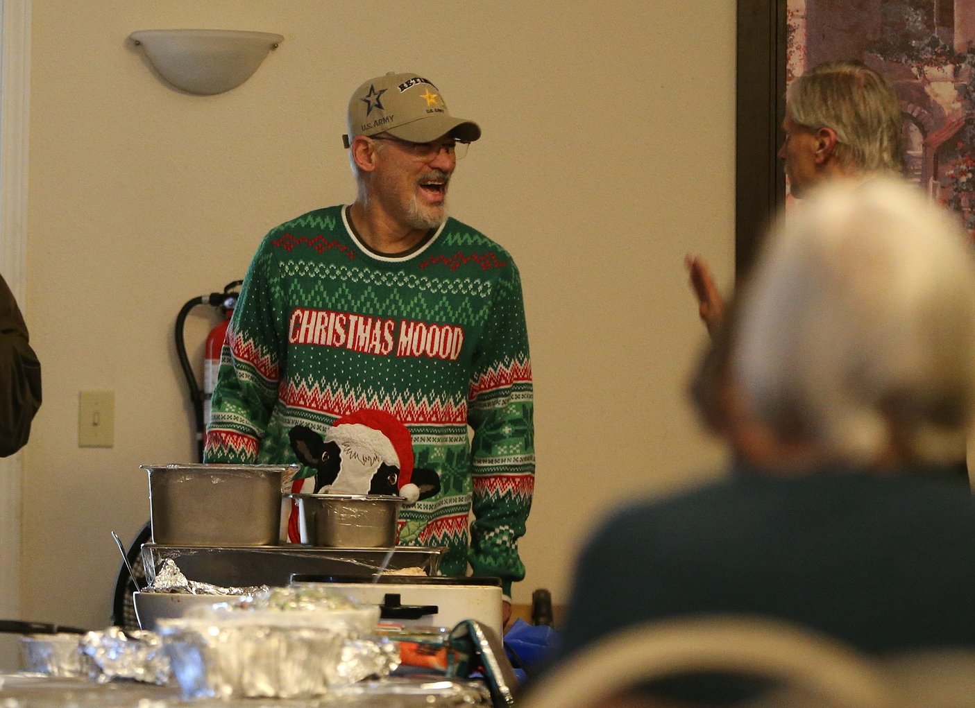 His wife, Eileen Wilson, came to the church with a couple Bunco friends. She and Tom have one son in the Philippines and they plan to celebrate Christmas on Saturday with their other son who lives nearby. They were both happy to spend the holiday meal at True North.