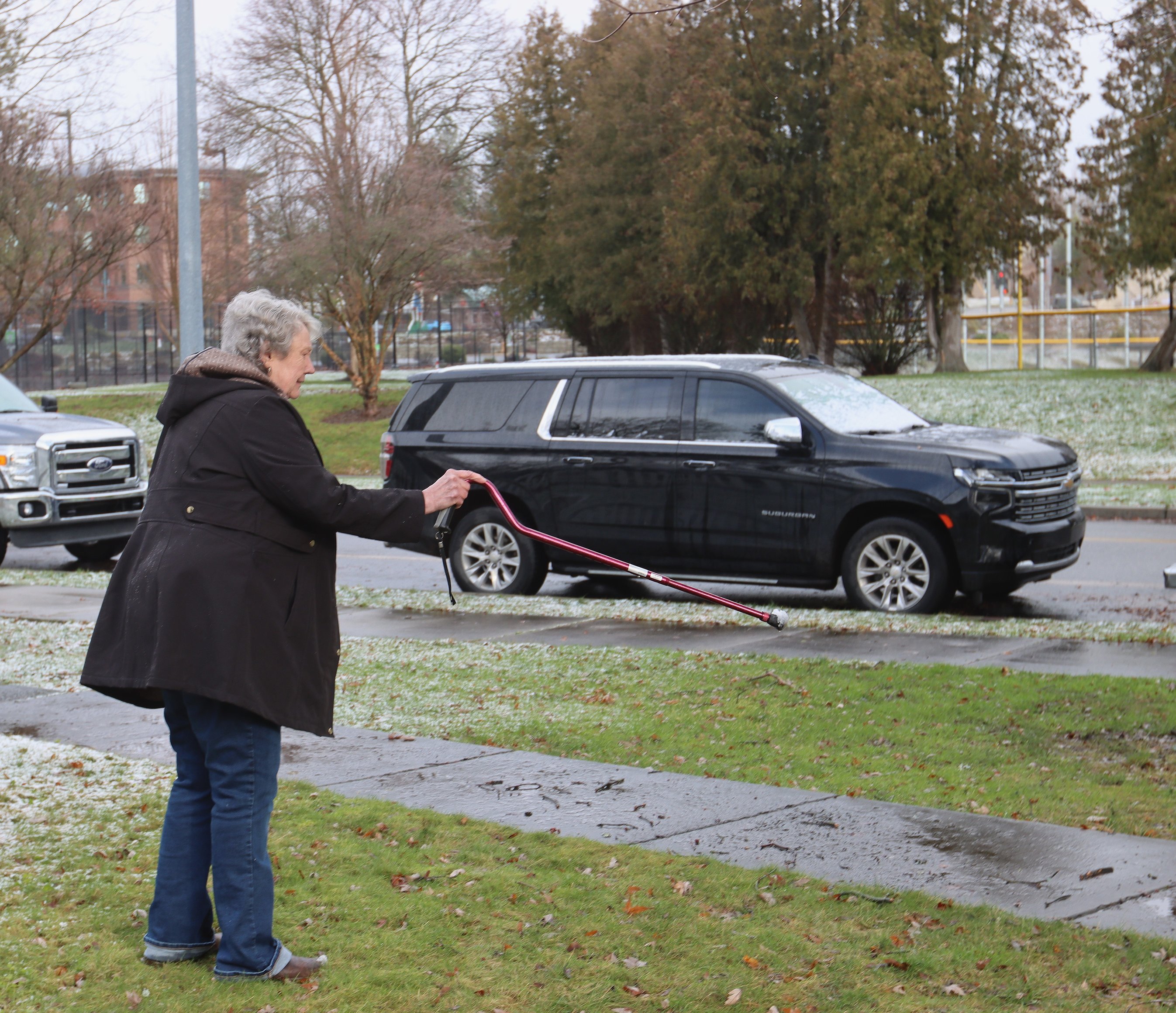 Mary Gray is a 77-year-old resident in the neighborhood. She uses a cane or a walker for mobility, and on slushy or icy days, the trek from the alley where she keeps garbage to out front for pickup could be challenging.