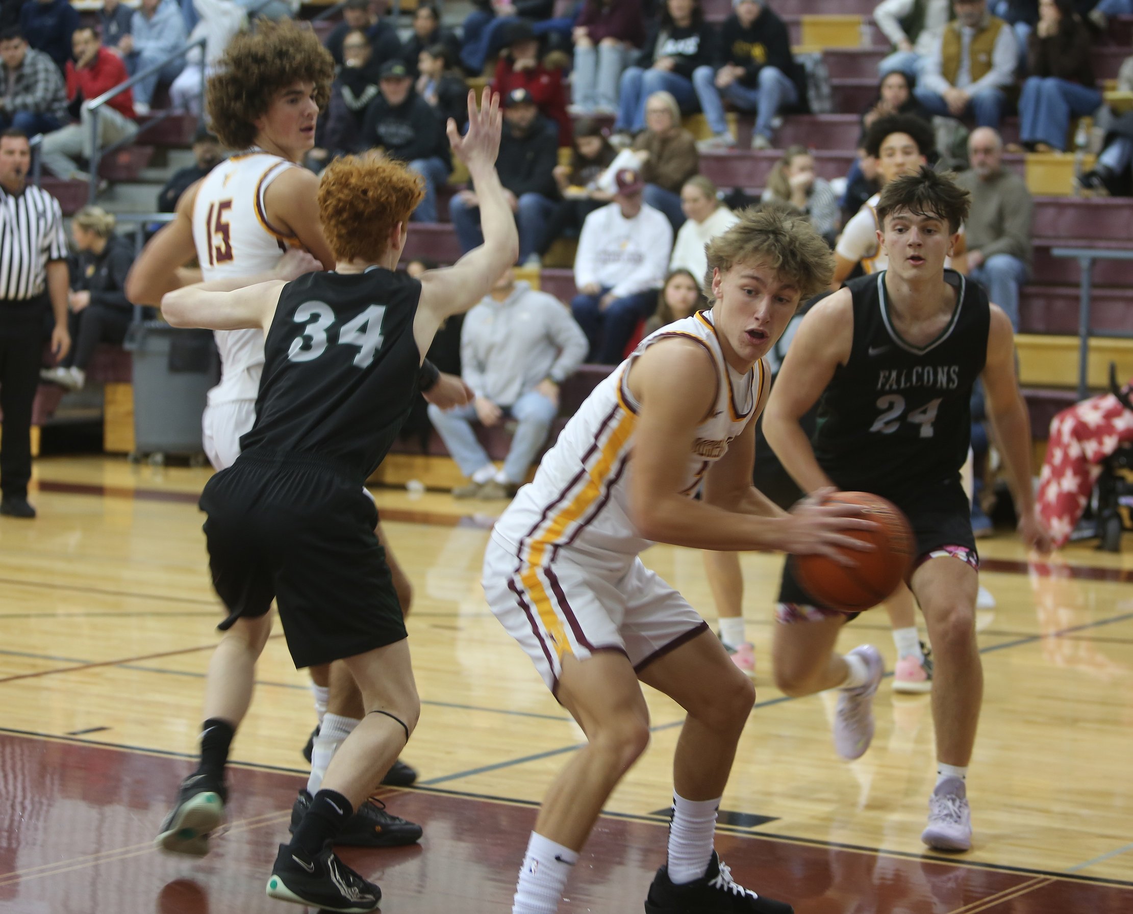 The Falcons capitalized on a full-court pass, which led to a layup to start the second quarter. Though the Mavericks responded swiftly with a pair of scores by Taggart Rathbun and Carter Anderson, who slithered their way inside for easy buckets. At a moment's notice, Moses Lake began to separate themselves from the Falcons and led 40-19 by halftime.