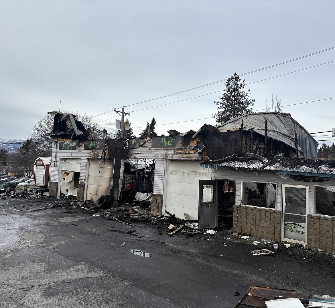 BONNERS FERRY — The Elite Tire & Suspension auto shop burned down early Sunday, Dec. 28, destroying the building. The fire likely started in a server area, according to the Idaho State Fire Marshal’s Office. No other properties were damaged.