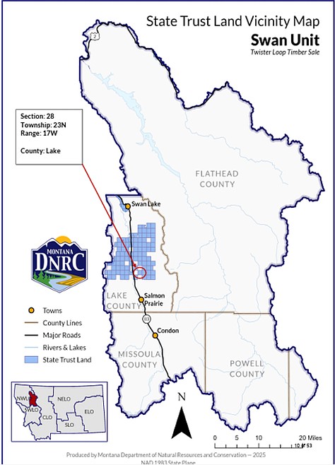 The Twister Loop Timber Sale, approved Dec. 15, covers 533 acres and has an estimated harvest volume of 19,029 tons of sawlogs, according to the Board of Land Commissioners agenda. The sale will consist of selected individual trees, shelterwood, old-growth maintenance, and overstory removal.