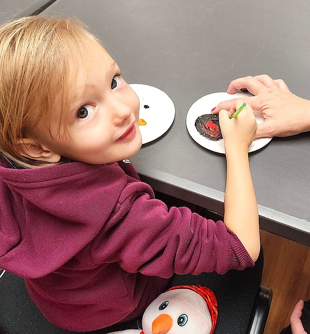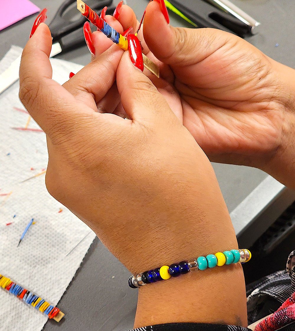A group of four or five young girls came in the morning and had fun making rawhide earrings, according to Nadia Adams Askins, education director at Three Chiefs. Younger kids, 11 and smaller, brought a parent or other adult to help make their earrings.