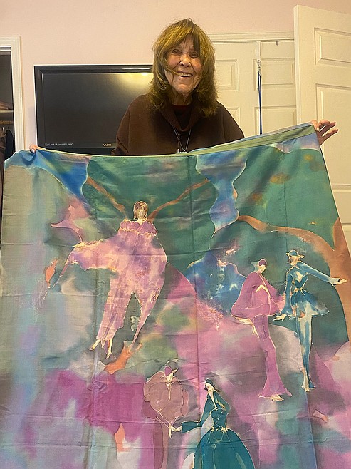 Each piece has a story to it — she can remember exactly where she drew inspiration for each painted silk.