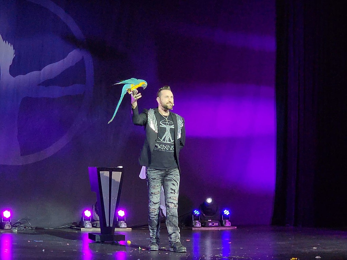 DaVinci’s use of birds began in high school when he won a magic championship for a performance with doves. He then turned his attention to his family’s pet blue-and-yellow macaw, and after persuading his parents, taught it to do a card trick and eventually integrated it into his act.