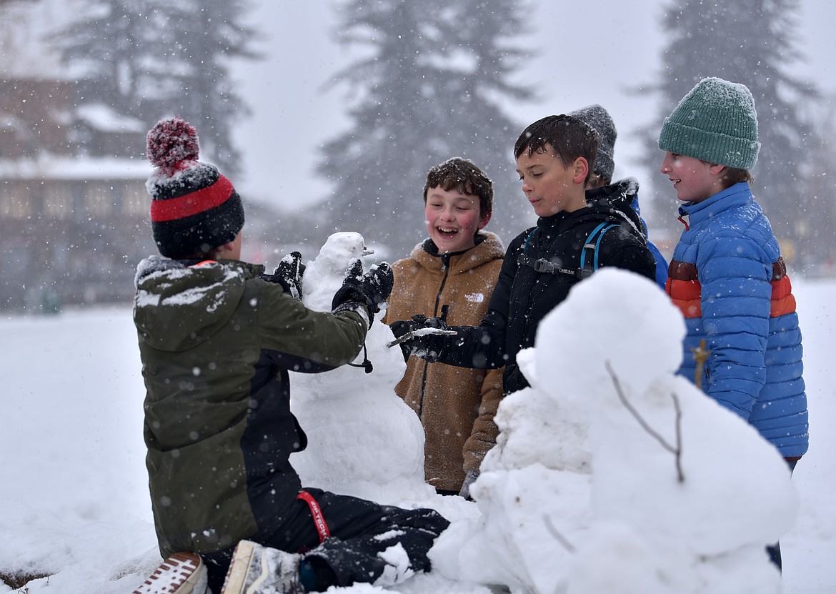 Making snowmen for the Third Annual Snowman Protest before the Carnival Parade on Feb. 8, 2025. (Kelsey Evans/Whitefish Pilot)