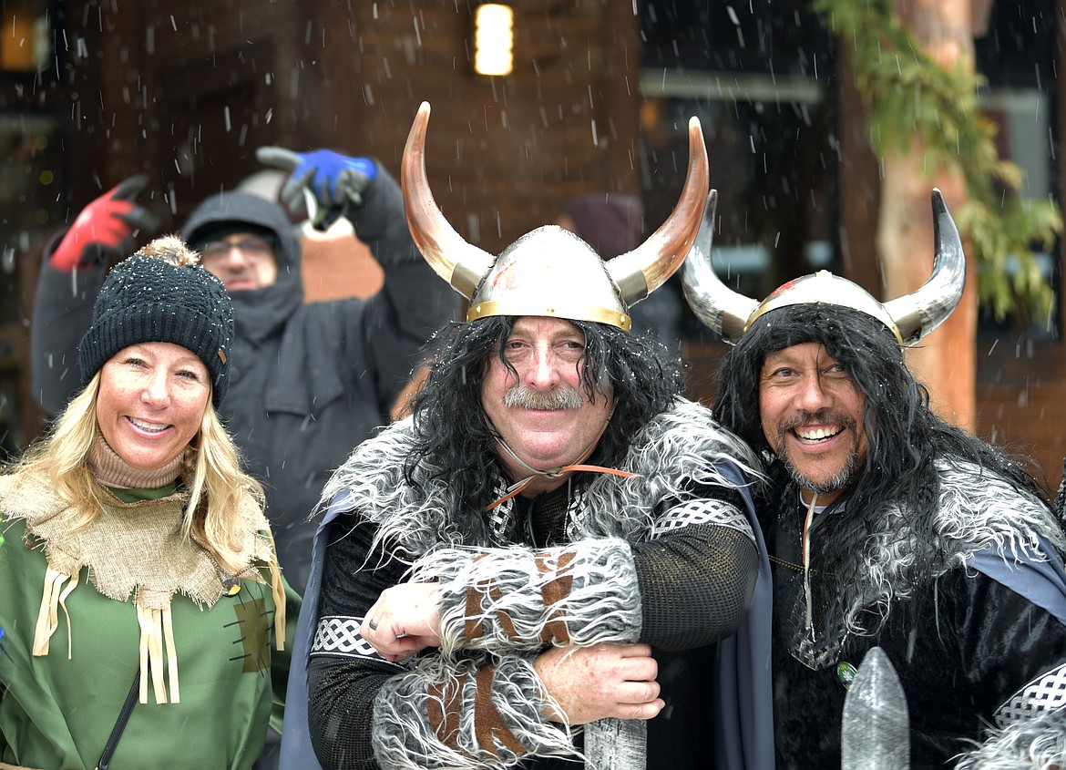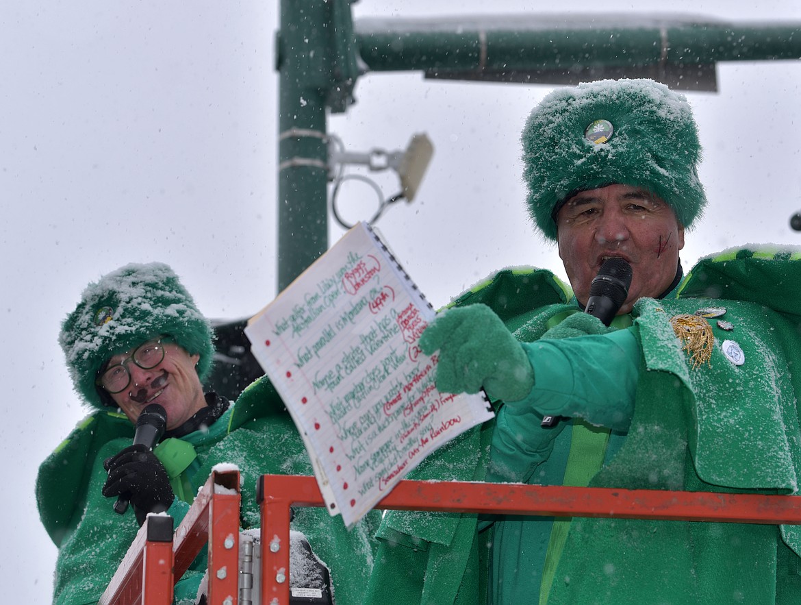 Marcus Duffy, 2021 Prime Minister, and Pat Carloss, 2024 King Ullr, during the Grand Parade. (Kelsey Evans/Whitefish Pilot)