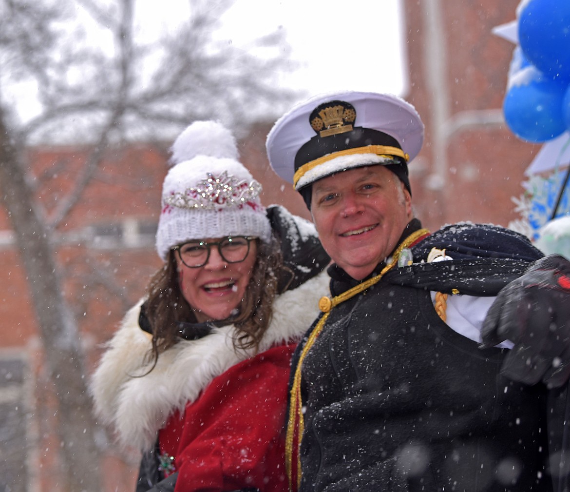 Queen of the Snows Coco Pickert and King Ullr LXVI Ross Pickert during the Grand Parade. (Kelsey Evans/Whitefish Pilot)