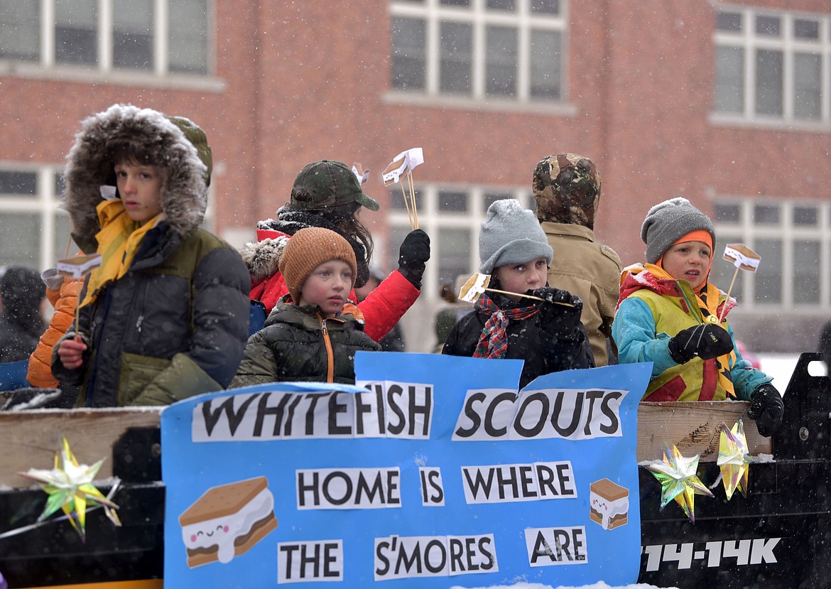 Scouts at the 66th annual Whitefish Winter Carnival Grand Parade on Feb. 8, 2025. (Kelsey Evans/Whitefish Pilot)