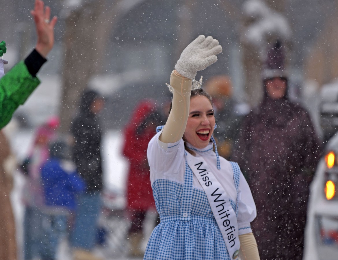 Bethany Barnes 'Miss Whitefish' 2025 at the 66th annual Whitefish Winter Carnival Grand Parade on Feb. 8, 2025. (Kelsey Evans/Whitefish Pilot)