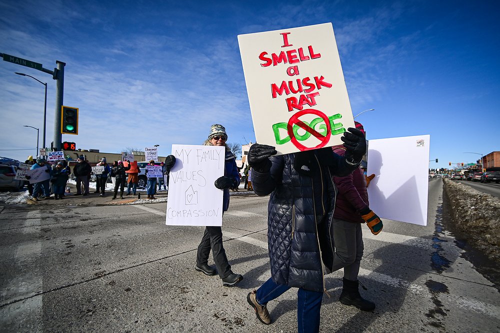 The protest mirrored other demonstrations in opposition to the Trump-led changes roiling Washington, D.C., including a Feb. 5 protest at the statehouse in Helena. In the few weeks since resuming office, Trump — with help from Musk and his Department of Government Efficiency — has sought to dismantle the U.S. Agency for International Development and Consumer Financial Protection Bureau, slashed or frozen federal spending and induced government employees to leave their positions. The flurry of unilateral activity, slammed by opponents as unconstitutional, has resulted in dozens of court cases across the country.