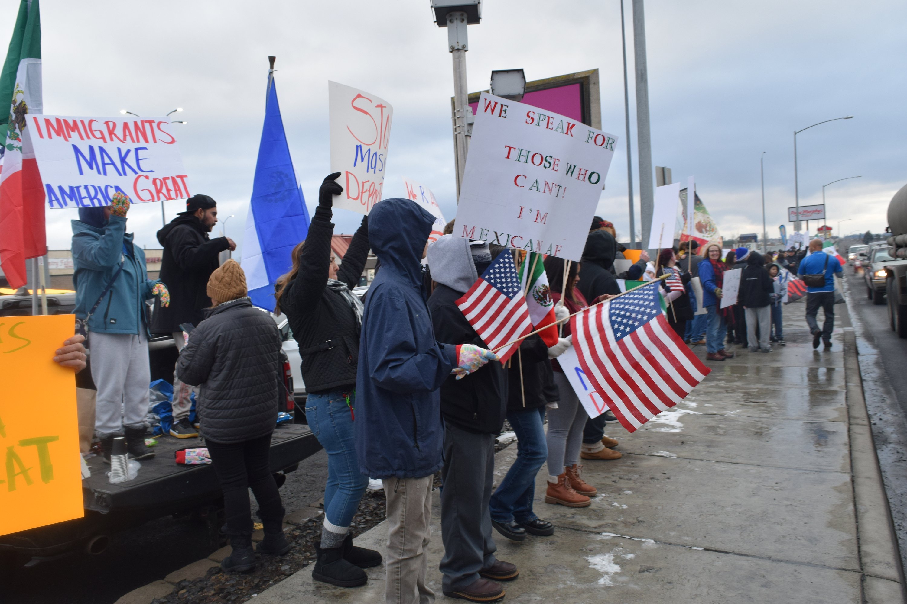 On Saturday in Moses Lake around 500 people gathered for a protest regarding immigration deportations. There were both civil interactions with people asking questions, honking with agreement and also less civil interactions with people stopping to yell slurs from their vehicles, flip off protestors and make other negative gestures.