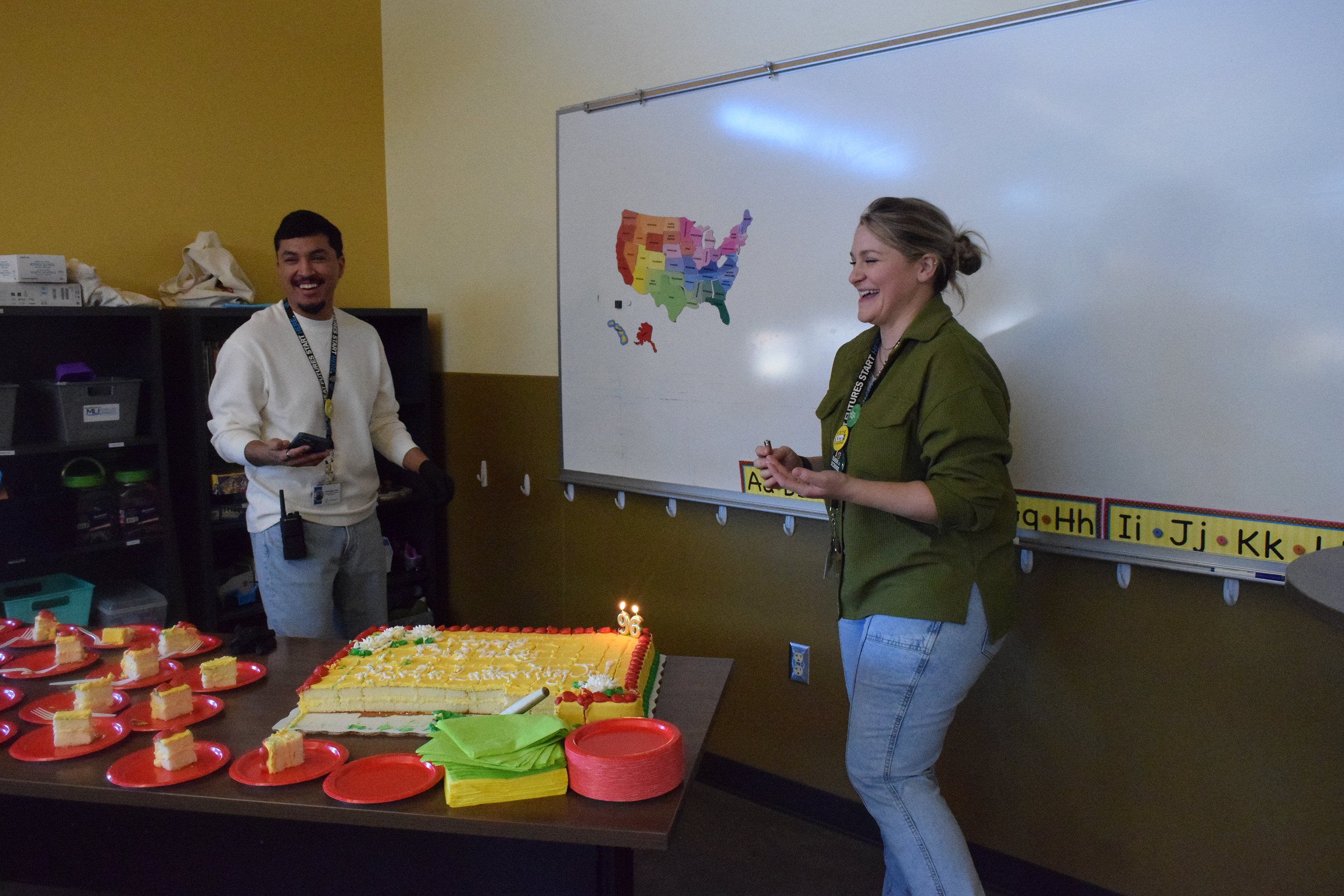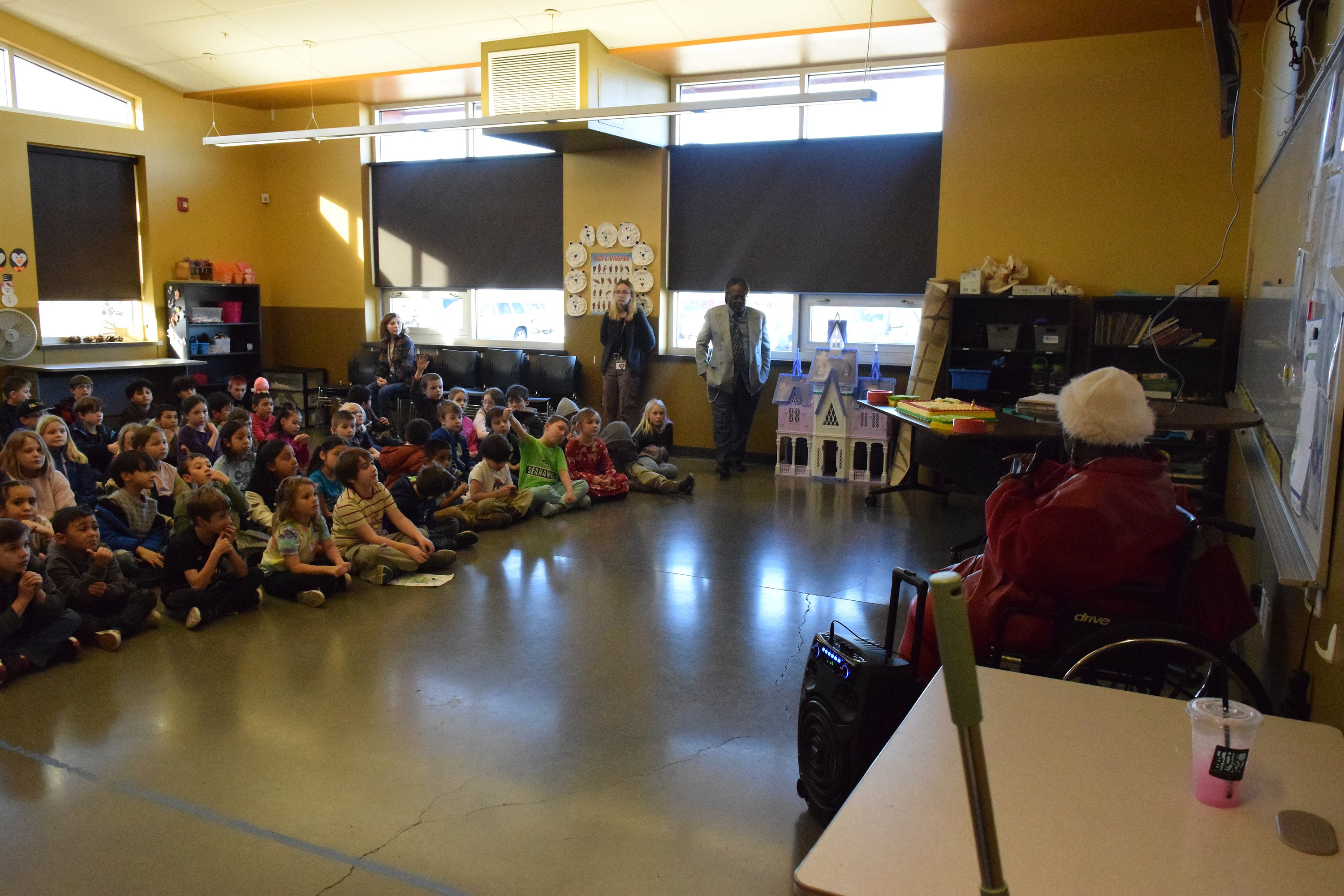 “I found ever since post COVID, they just have such a hard time sitting still and staying engaged, or they are on their phones or devices a lot at home. To have them sit and listen to someone speak is difficult, but I thought they did a great job and they had a lot of fun,” Director of Operations Cecily Hendricks said. “I know they liked singing, and of course the cake, too.”