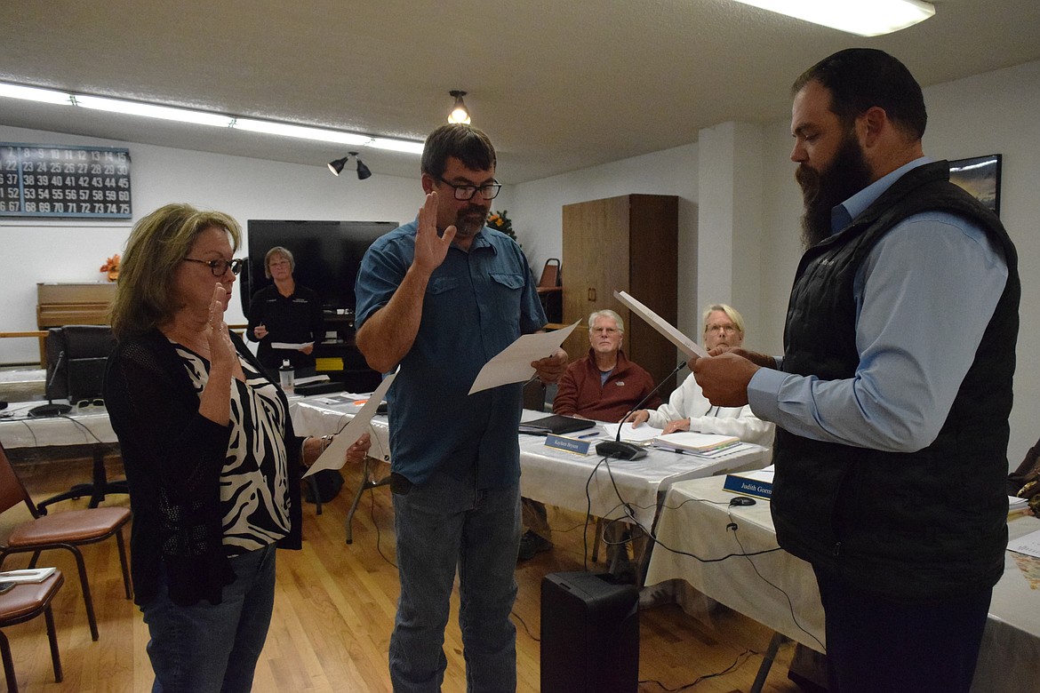 SOAP LAKE – Grant County Commissioner Kevin Burgess adminstered the oath of office to Mayor Peter Sharp Wednesday. Sharp was previously appointed to this role at the Sept. 18, 2024, council meeting after his predecessor Allen DuPay quit during the Aug. 7, 2024, meeting.