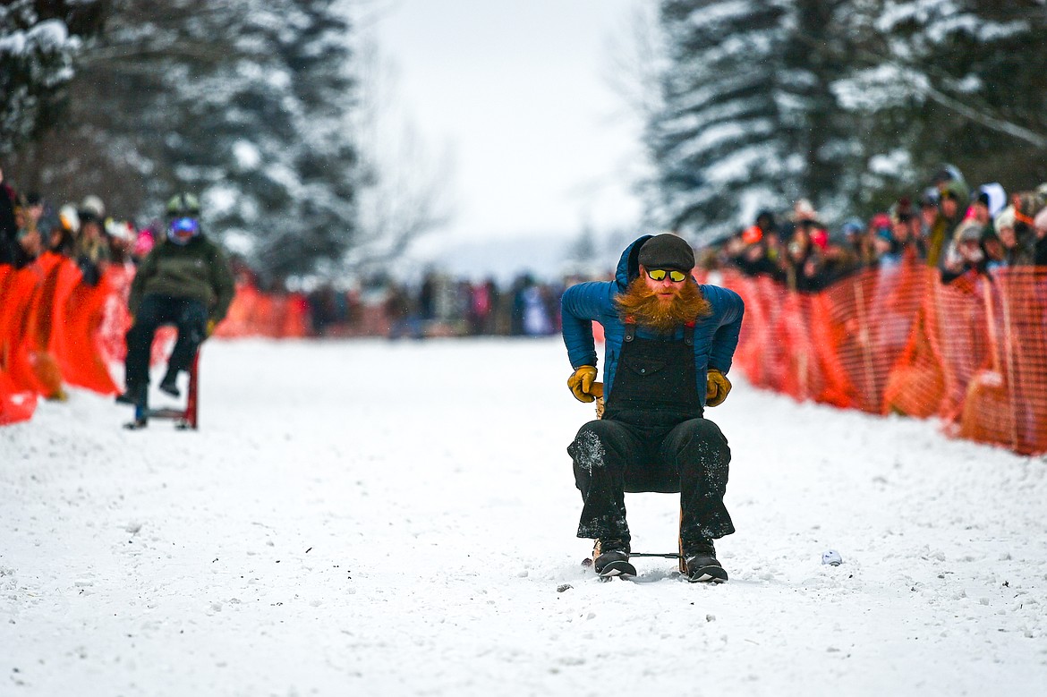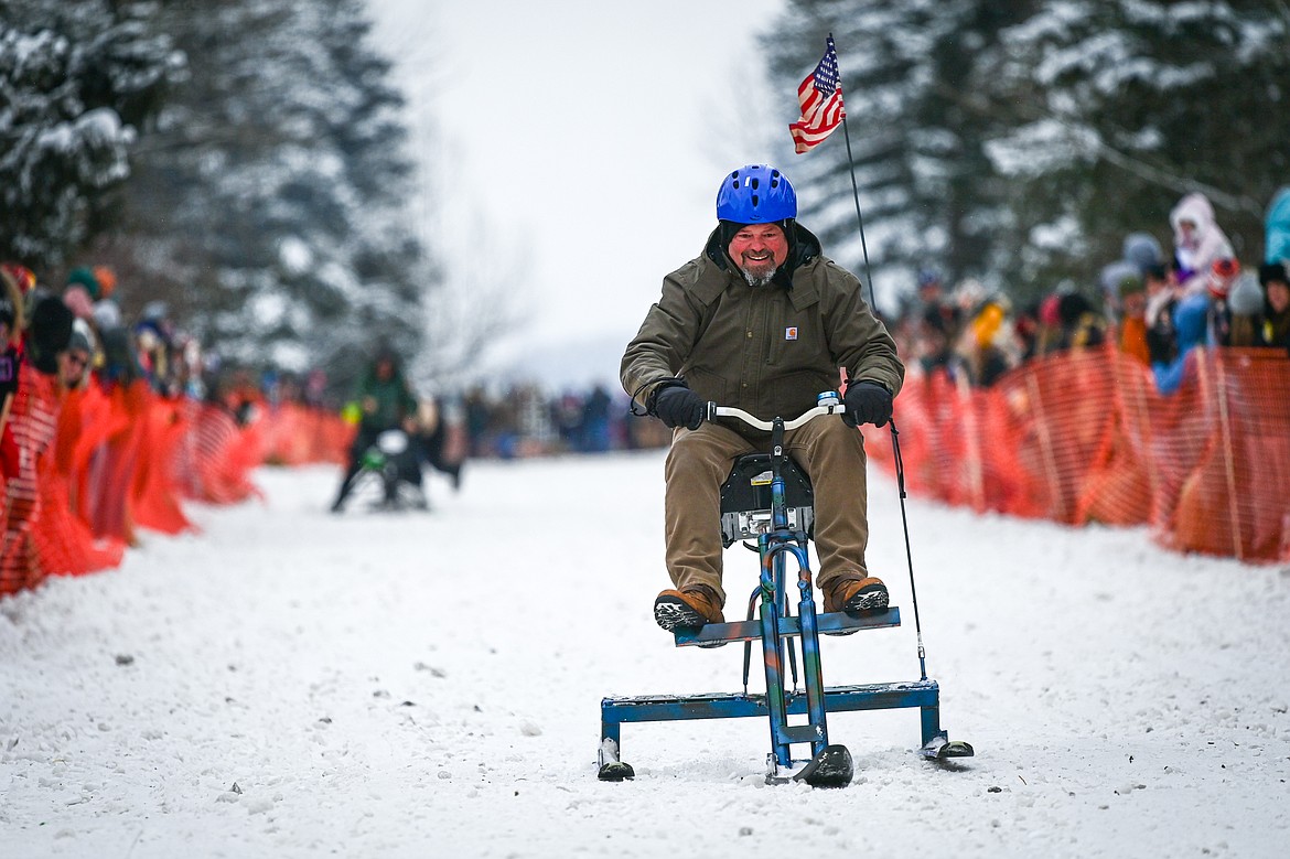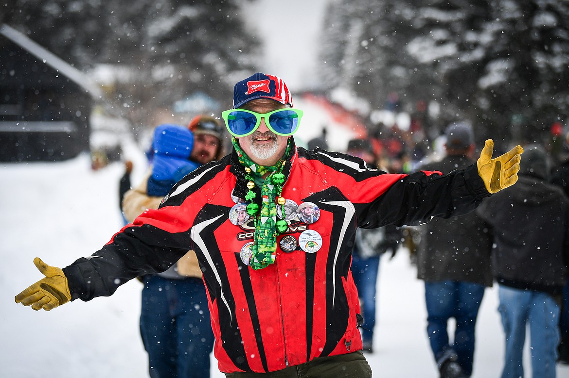 Don Lietz walks along Central Avenue in Martin City during the Barstool Ski Races at Cabin Fever Days on Saturday, Feb. 15. (Casey Kreider/Daily Inter Lake) Casey Kreider