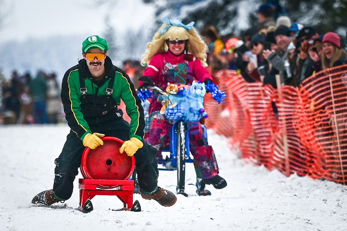 Scenes from the Barstool Ski Races at Cabin Fever Days in Martin City on Saturday, Feb. 15.