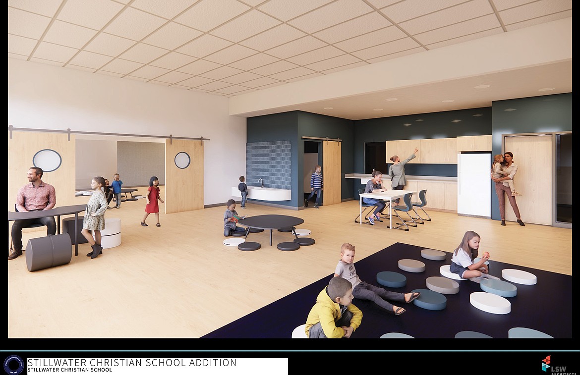 Stillwater Christian School Early Learning Center construction project will include five classrooms and a gym geared for elementary students. The project recently received a $1 million grant from the Gianforte Family Foundation. (Drawing by LSW Architects)
