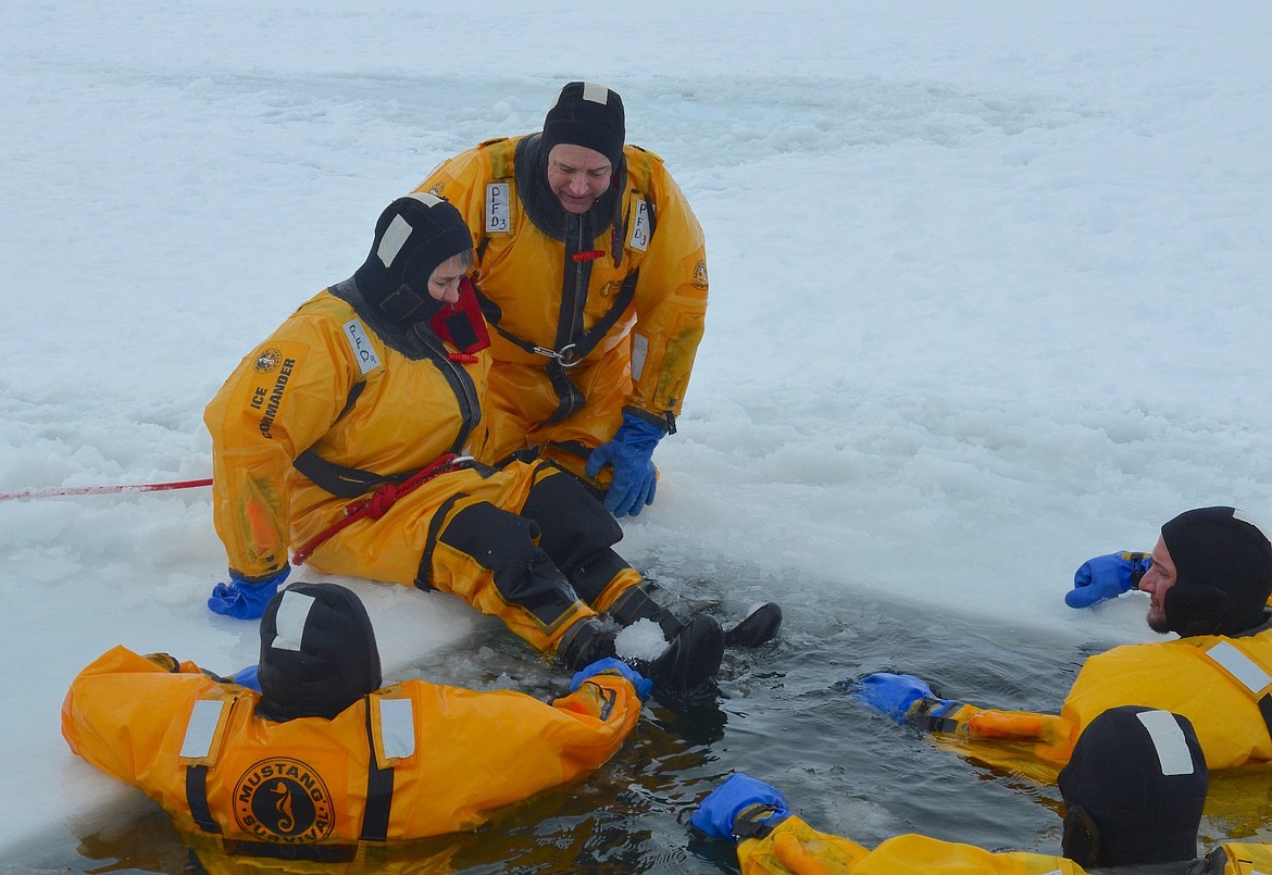 The annual training, which involved about 30 volunteers from Lake County Search and Rescue and Polson City, Polson Rural and Chief Cliff fire departments, was conducted at the boat launch near KwaTaqNuk Resort. They had also attended a two-hour class last Tuesday before venturing onto the ice.