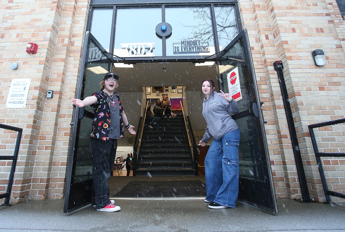 “It’s Mountain View, it’s the best school in the world,” said freshman Khonner Peck, who served as a door greeter with eighth grader Leilani Chaney.