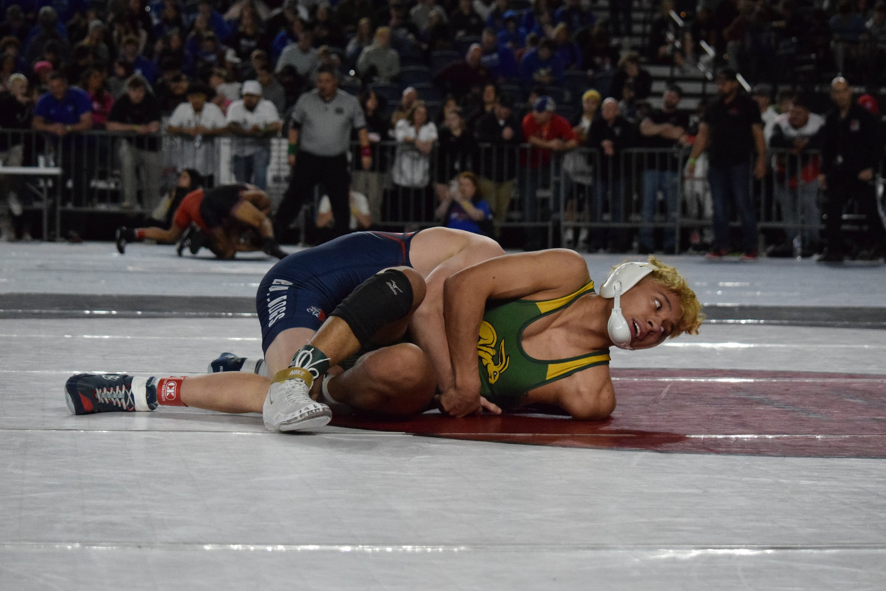 In the Boys 2A 215 category, Anthony Solorio of Othello will be wrestling Jimmy Conklin of Lakewood. Solorio won his first two matches by a fall and his third by a technical fall, setting him up to face his Lakewood opponent.