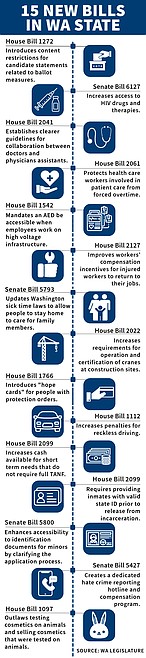 These include stricter legislative guidelines for the publication and distribution of voter pamphlets. Access to HIV medications and treatments is now increased, alongside regulatory reforms for physician assistants and restrictions on mandatory overtime for health care workers.