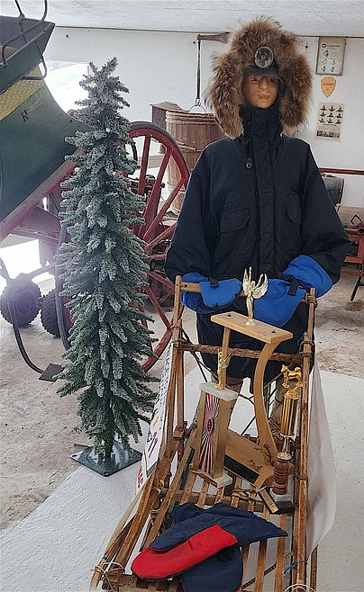A new display in the Miracle of America Museum celebrates the bittersweet retiring of Jack Beckstrom's parka, mitts, hat, and mukluks. Pam, Jack's wife, was on hand to talk about the display honoring Montana mushers, sleds, dogs, and the annual Race to the Sky coming on February 7. (Berl Tiskus/Leader)ARTICLES BY BERL TISKUS