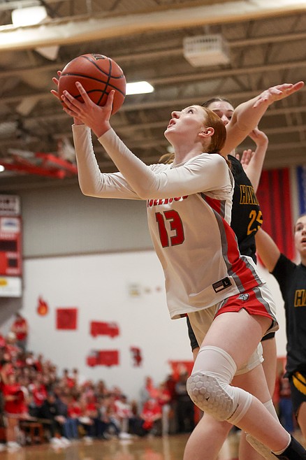 Sandpoint High sophomore Brecken Mire finishes a layup during Friday night's contest against Lakeland.ARTICLES BY MAX OSWALD