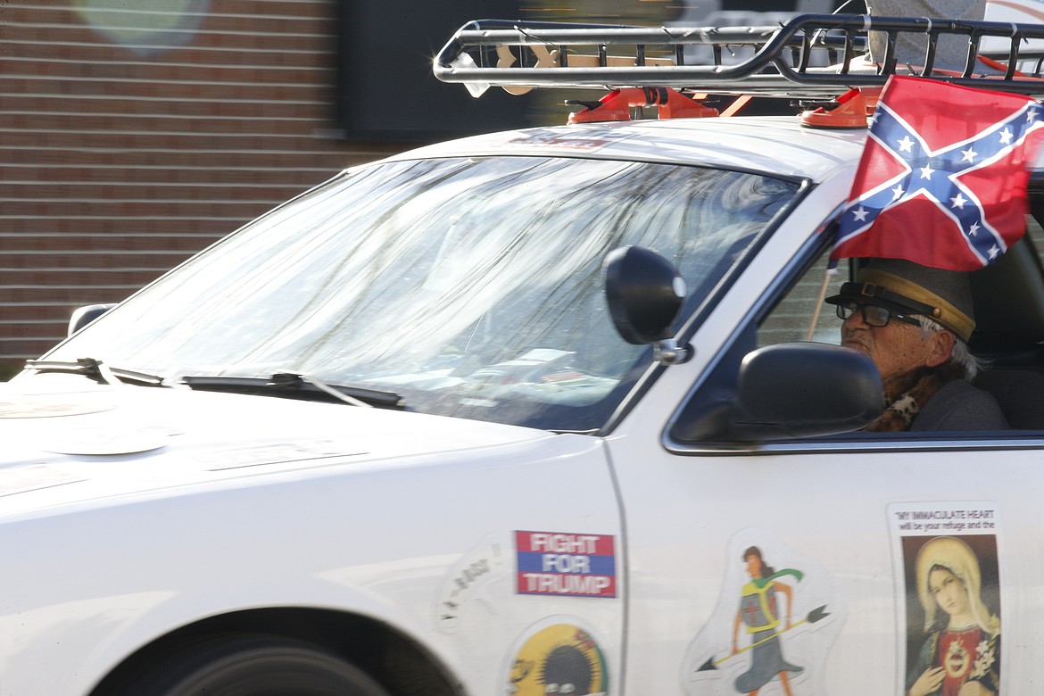 The convoy roared down Sherman Avenue around 12:30 p.m., flags whipping in the cold air as drivers honked their horns and waved or pumped their fists toward those they passed. Many motorists driving in the opposite direction matched the enthusiasm of the Trump supporters, honking and waving.