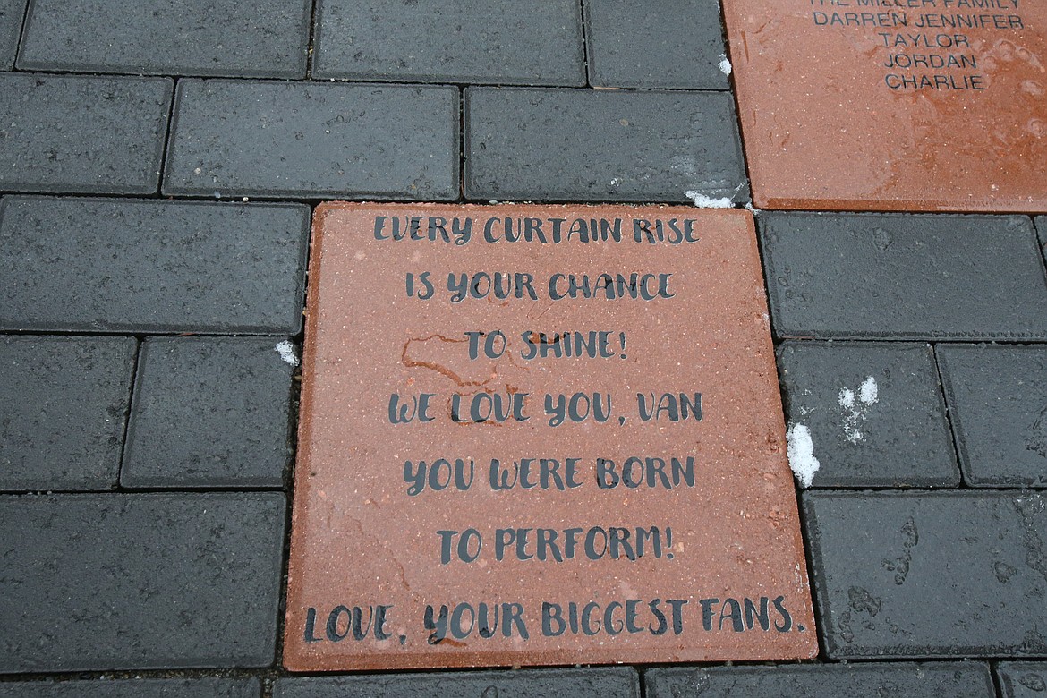 Names of individuals and logos of local businesses have been etched onto bricks large and small as a way to recognize those who helped revive the historical playhouse after a devastating flood in 2021. The bricks also pay tribute to the many generations of actors and families who have graced Lake City's stage.