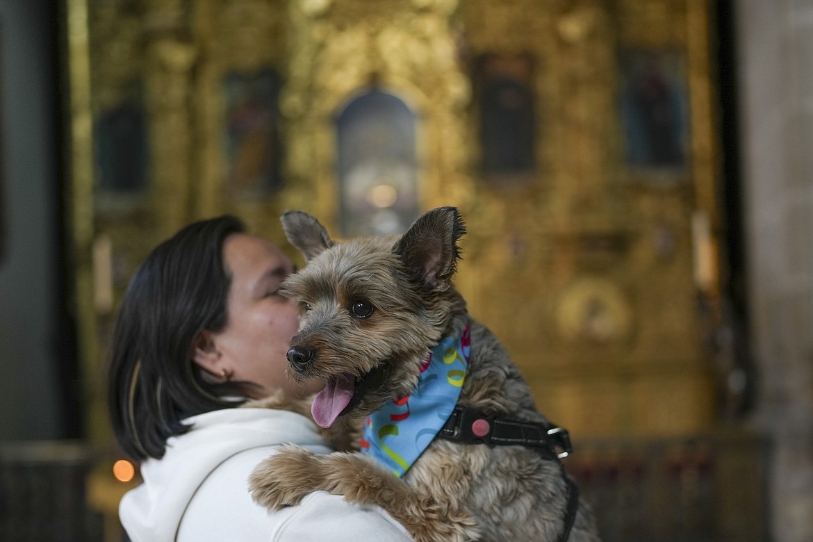 MEXICO CITY (AP) — Behaving at their best, a dozen dogs attended Mass at Mexico City's cathedral Friday, waiting for their turn to be doused with holy water.
