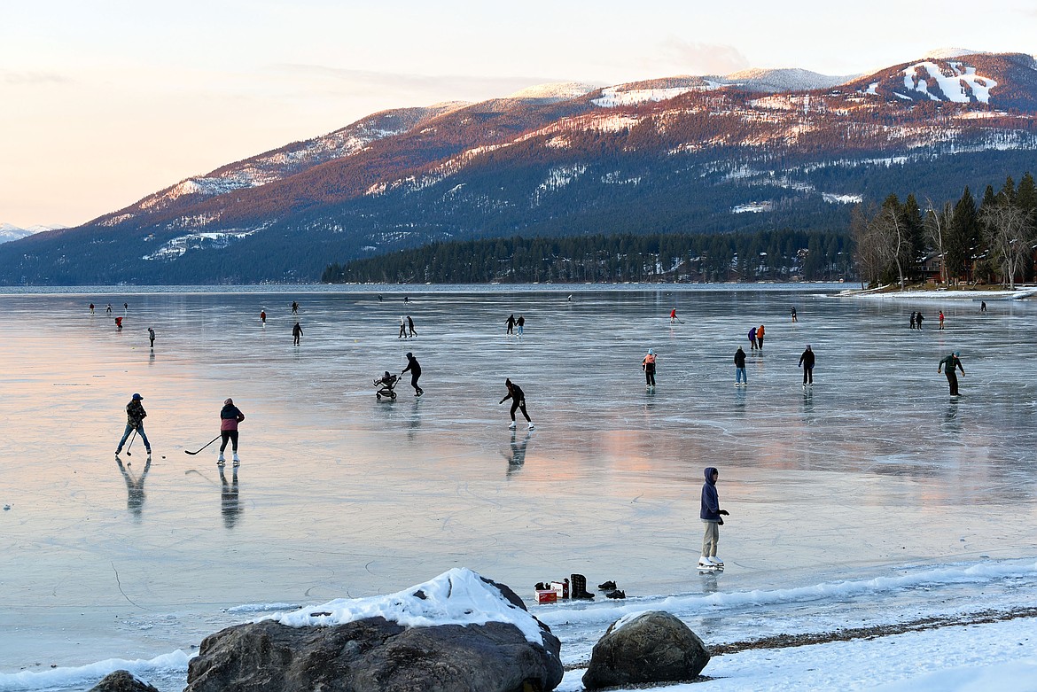 Hundreds of people flocked to City Beach over the weekend to enjoy the rare phenomenon of glassy ice-skating conditions on Whitefish Lake. The depths of the lake could easily be seen through the translucent surface that froze during the recent arctic outbreak, offering a remarkable look at what lies beneath.