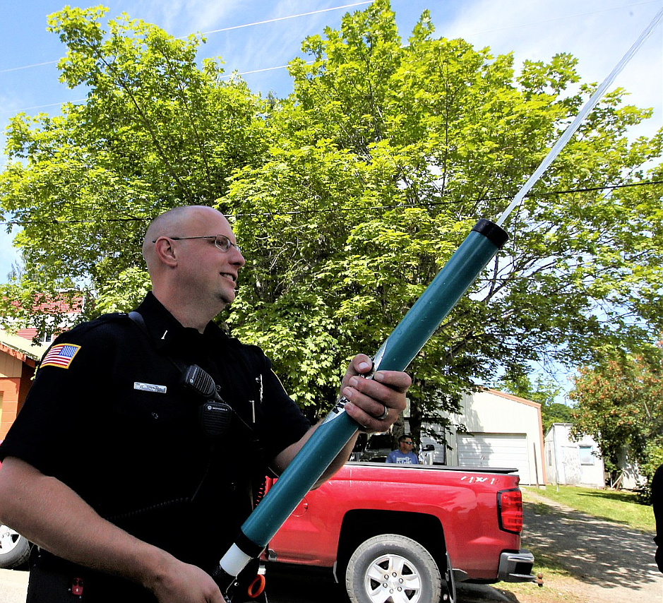 Timberlake Fire Protection District Lt. Ryan Shuck sprays water toward the crowd in the 2022 Bayview Daze Parade.
