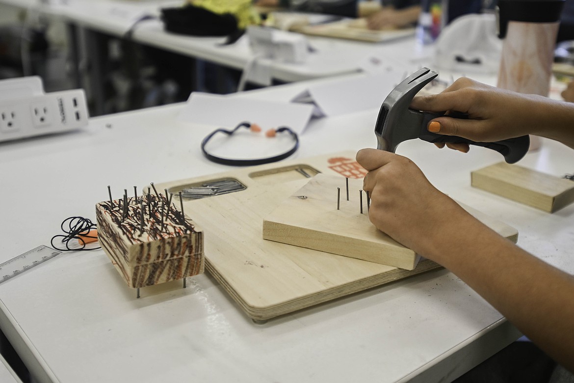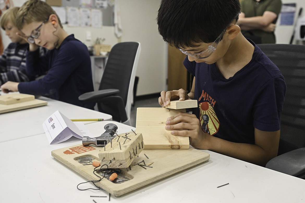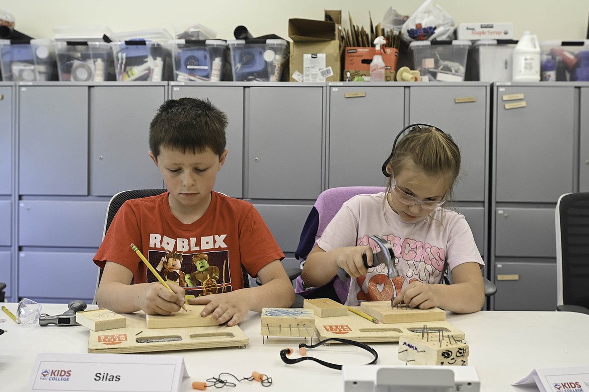 On a summer morning in June, elementary students walk into the Flathead Valley Community College’s library, taking seats in a classroom workshop. Sitting on the table are various wood working tools.