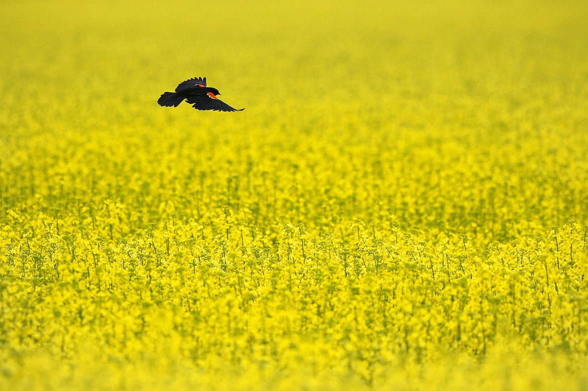 With plants from 3 to 5 feet tall, canola produces pods from which seeds are harvested and crushed to create canola oil and meal used for livestock feed. The plants produce small, yellow flowers which bring beauty to those passing by.