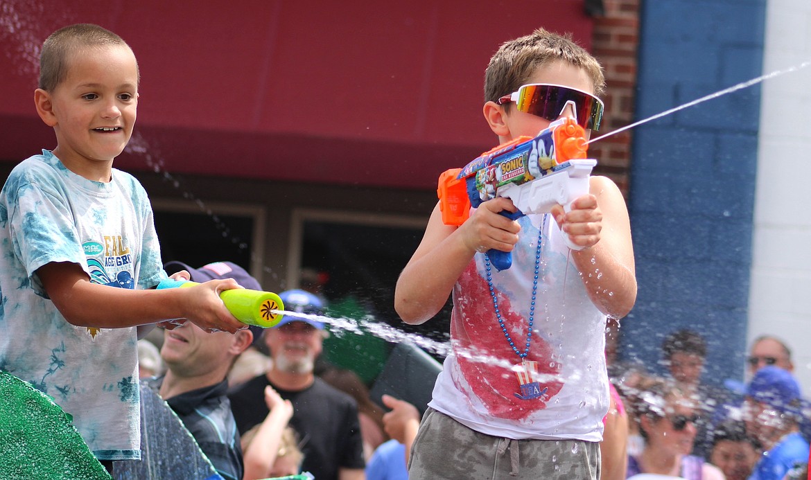 Of course, the biggest hit was the candy, as kids bolted into the street to get their piece of the prize while bobbing and weaving away from water guns, which caused some older audience members to back up to avoid getting soaked.