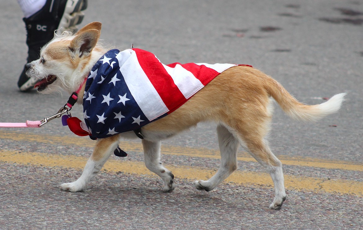 The parade began with the Honor Guard, holding up flags for respective branches of the military, and included bagpipers, floats representing sports teams and businesses, individuals and even a little dog wearing an American flag.
