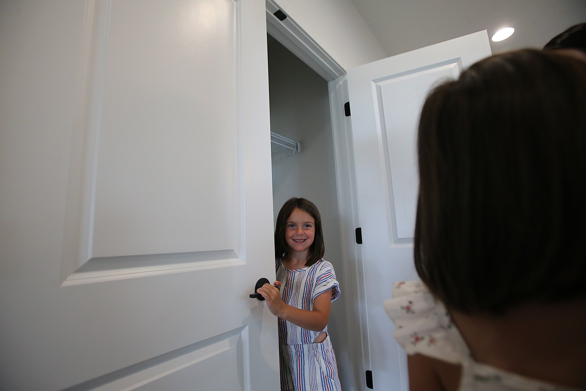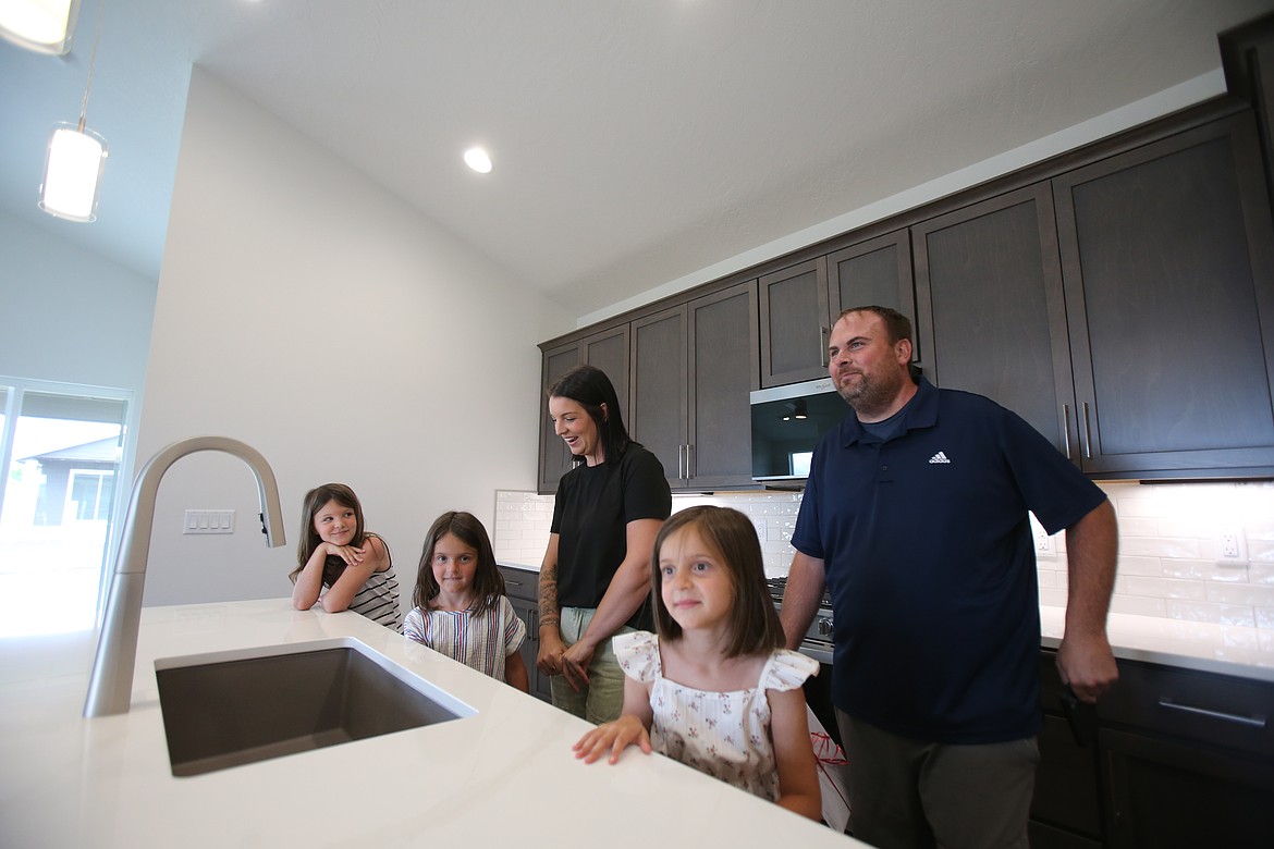 Thoroughly inspecting the house with them were their three daughters, Kennedy, 8, and twins Jade and Lettie, 6, who all gave the new house a thumbs up. They stretched out on the carpets, did cartwheels on the patio and wandered with wide eyes as they opened doors, peeked into closets and took it all in.