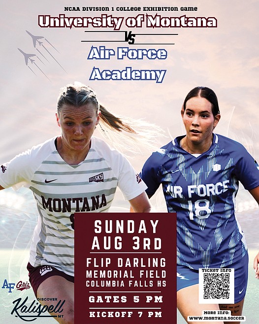On Saturday, Aug. 2, and Sunday, Aug. 3, Columbia Falls will once again host a pair of NCAA Division I women’s soccer powers — the University of Montana and the U.S. Air Force Academy — for a weekend of soccer clinics and an exhibition match at Flip Darling Memorial Field in Columbia Falls. It’s part of the second annual Glacier Park College Soccer Showcase, and organizers are hoping for another sold-out crowd.