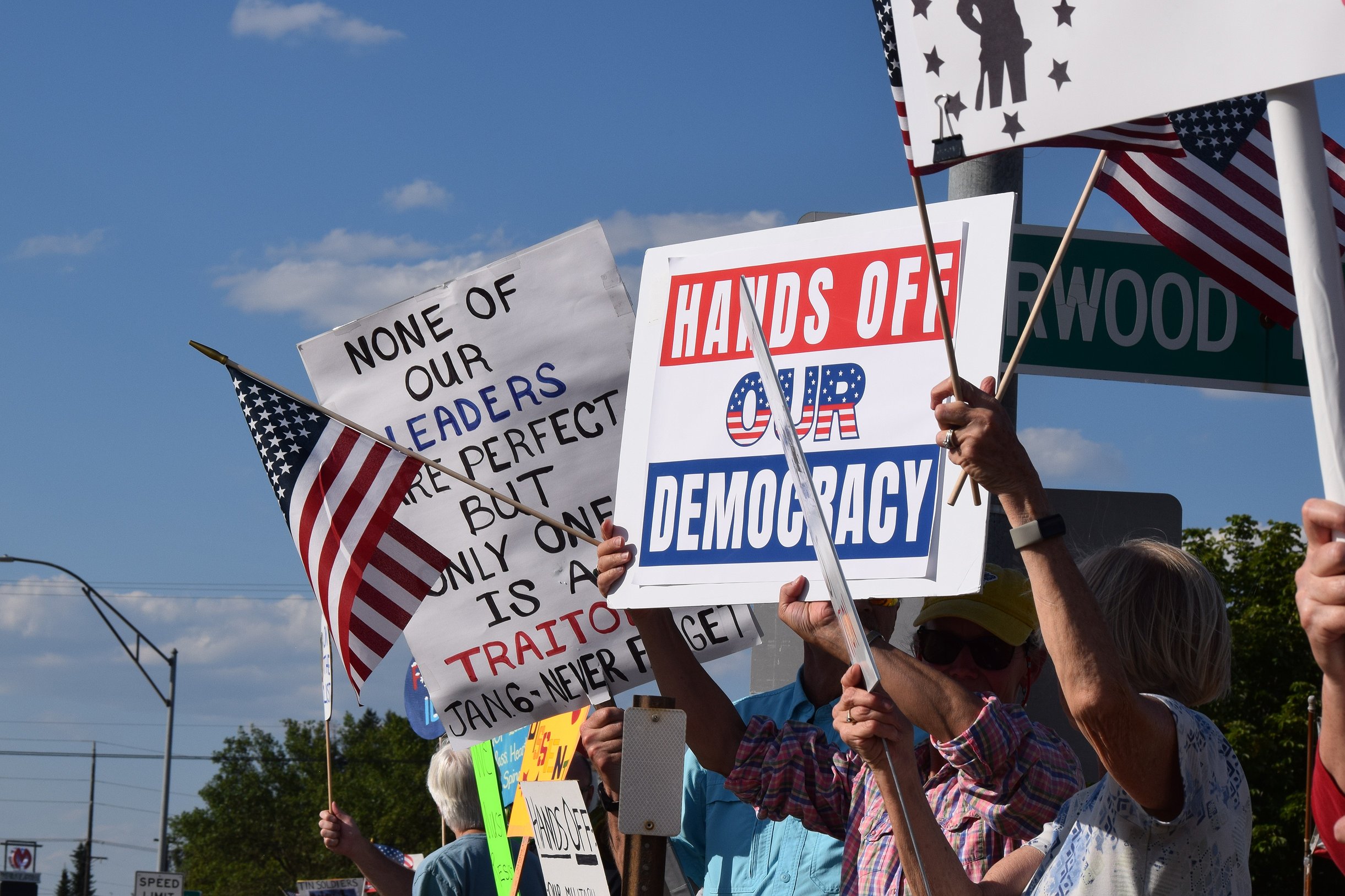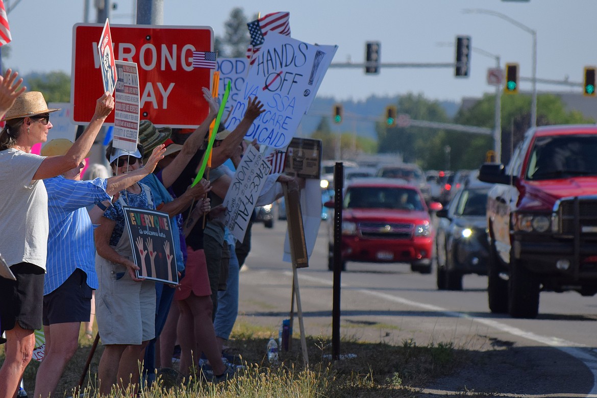 While some protesters held signs, many waved American flags as the late afternoon traffic rolled past.