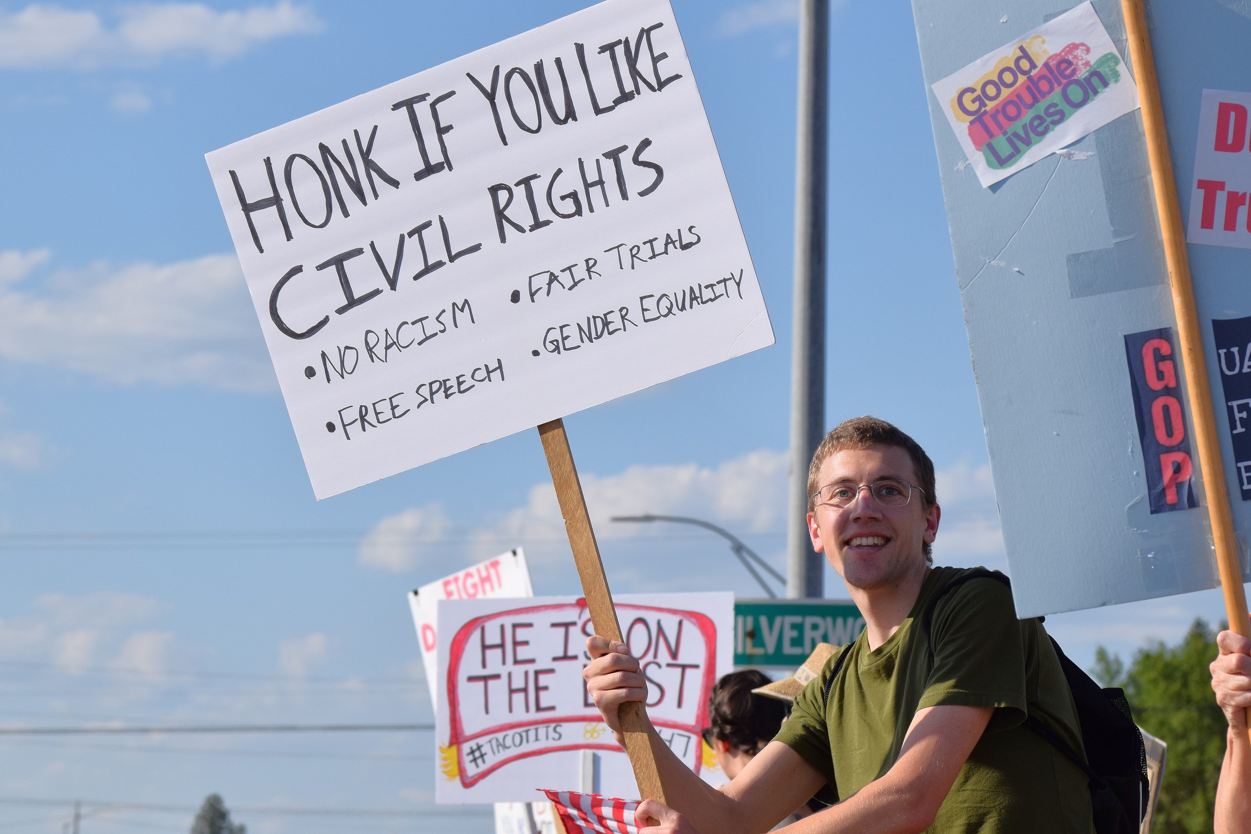 Green carried a sign that read “honk if you like civil rights” — a message he believed would be unifying across party lines.