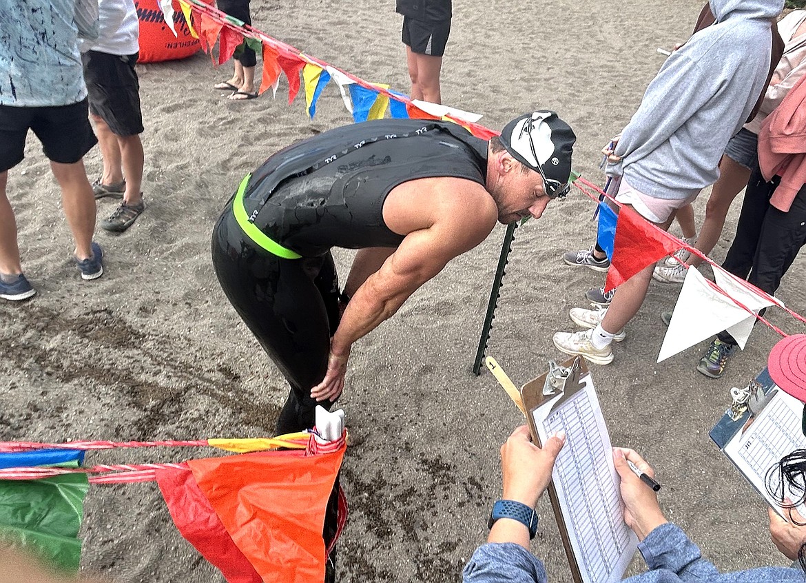 His experience in open waters paid off as he powered along alone, with kayakers monitoring the course, his only company on the cloudy morning.