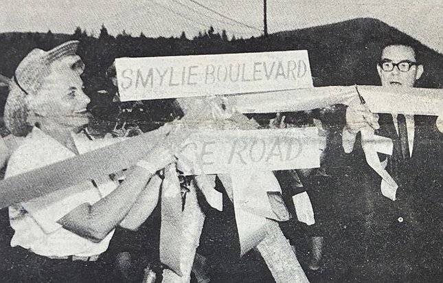 Smylie and Margaret Price, national president of the Girl Scouts, dedicated the main crossroads of Roundup City: Smylie Boulevard and Price Road.