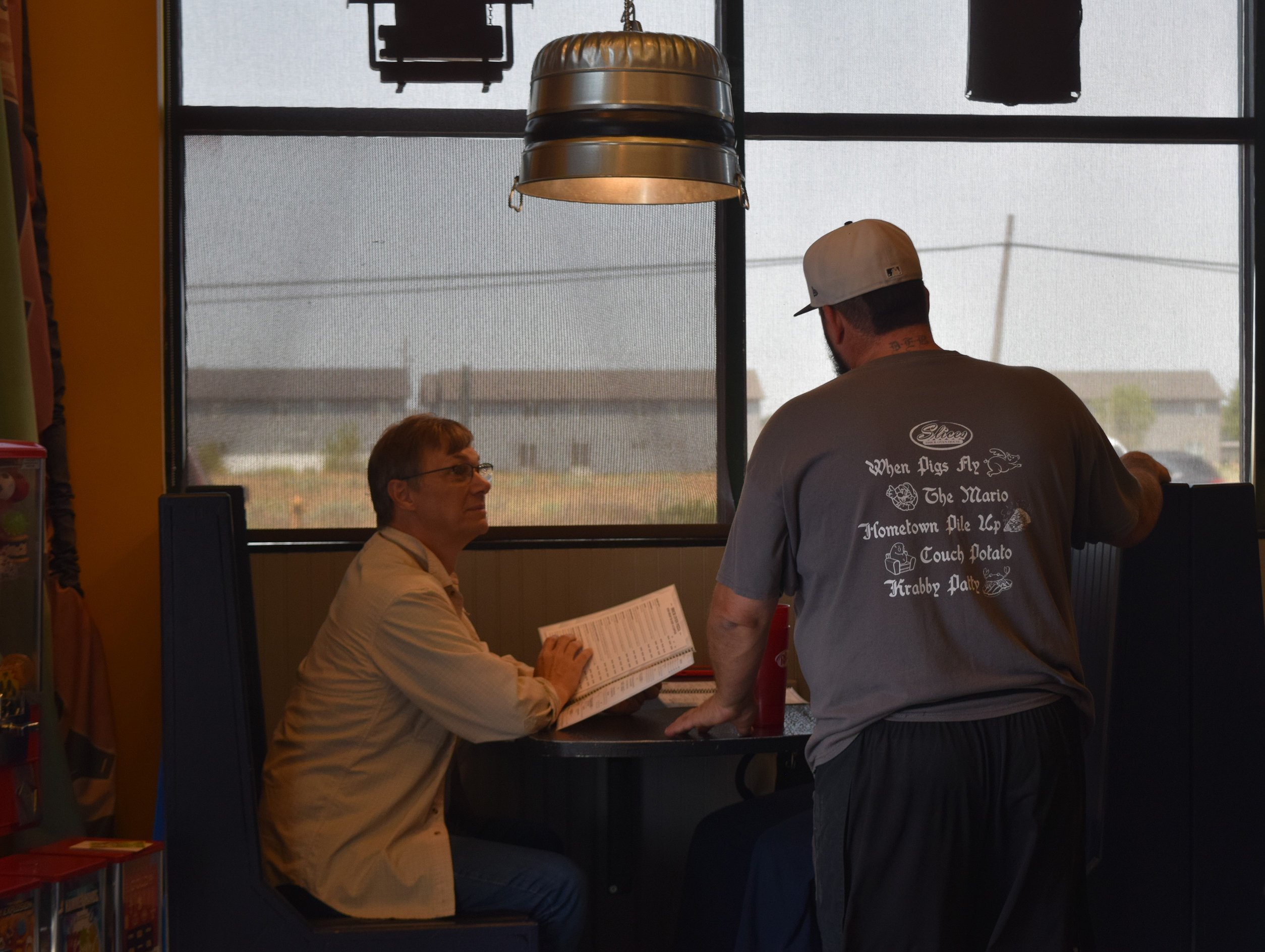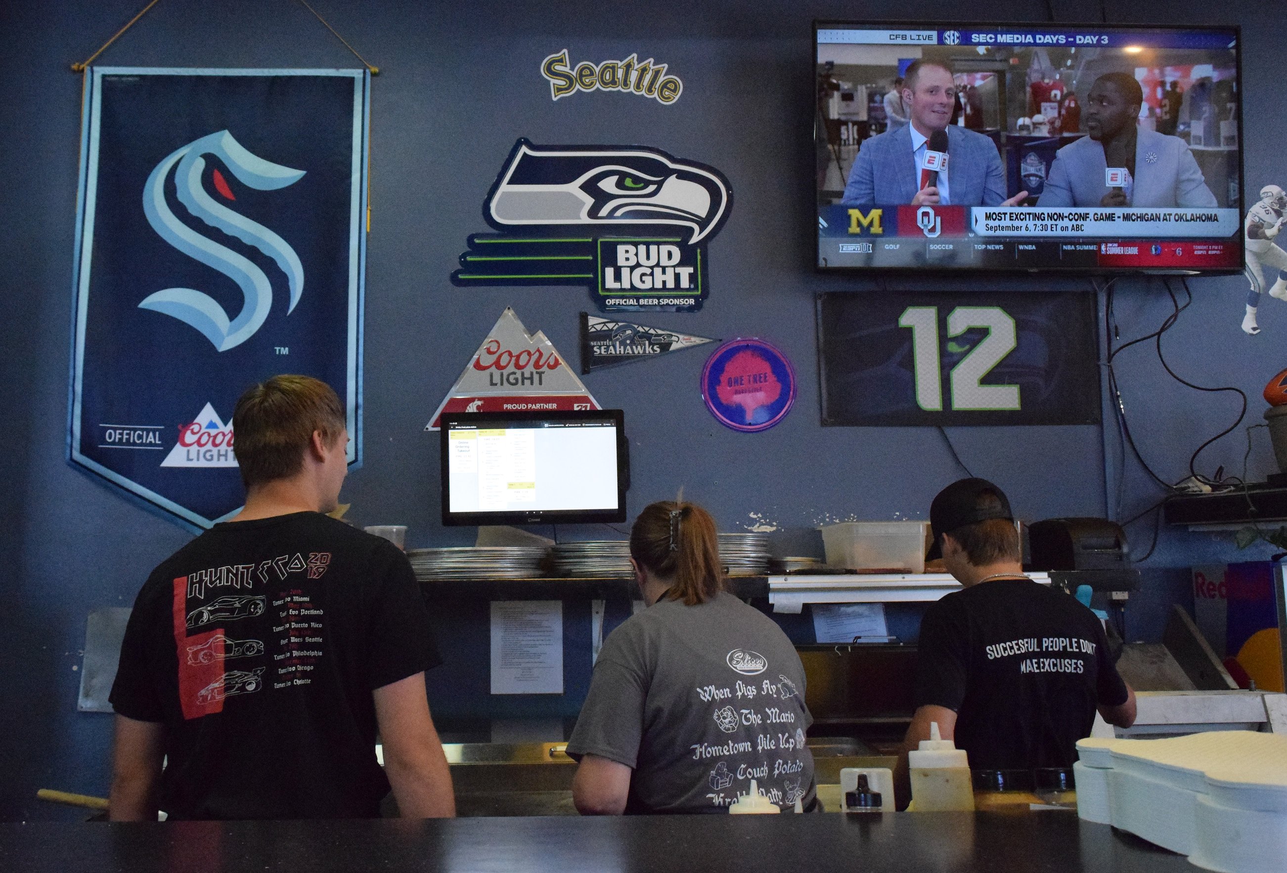 “My husband, he has kind of turned this into his man cave,” Becky said. “All of the sports memorabilia comes from him. We have beer, too, so people will come and get a beer, eat some pie and watch the game and I think that makes us stand out in this area. Not a lot of places around here where you can do that.”